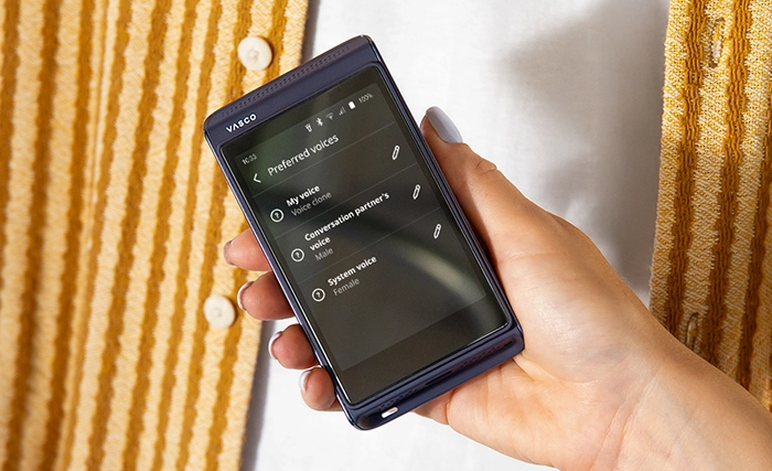 Pentru cei cărora le place să aibă opțiuni. Pe lângă funcția revoluționară Vasco My Voice, poți alege și traducătorul vocal masculin sau feminin, pentru a reda traducerile. Acest lucru îți permite să potrivești tonul oricărei situații. Preferi un ton formal pentru întâlnirile de afaceri sau unul mai cald pentru conversațiile cu familia? Traducătorul tău, regulile tale.